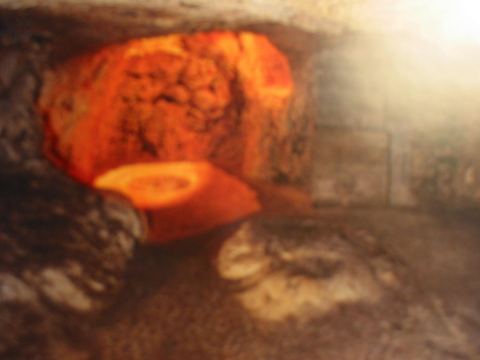 Casa-gruta donde vivieron Jesús, María y José, que corresponde a la excavación de una de las antiguas tumbas cananeas. Los de Nazaret se limitaron a subir un piso sobre la antigua sepultura, entonces ya abandonada, y los sótanos les servían para guardar cosas y ampliar la vivienda familiar. |